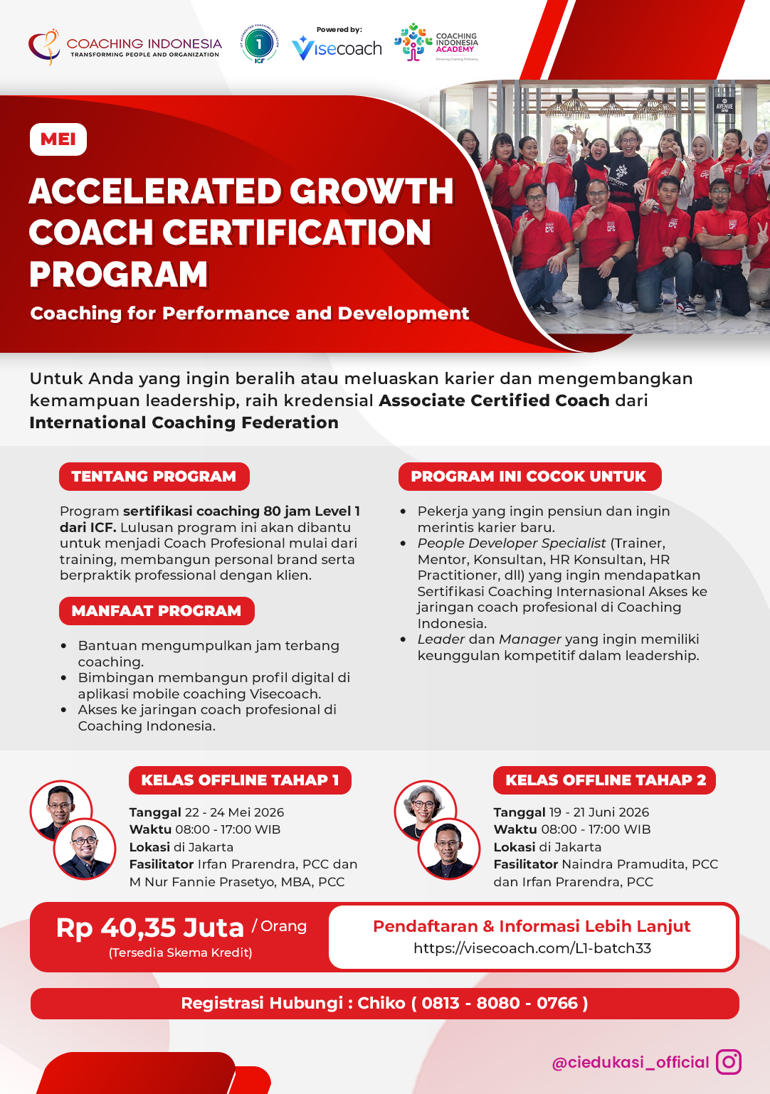 - Diakui 30 jam training berdasarkan Level 1 Akreditasi ICF.