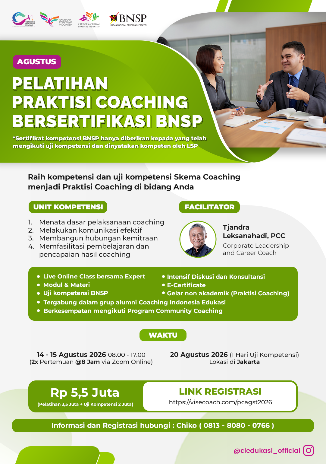 Lebih lengkap tentang Batch 45 - Praktisi Coaching Lisensi BNSP