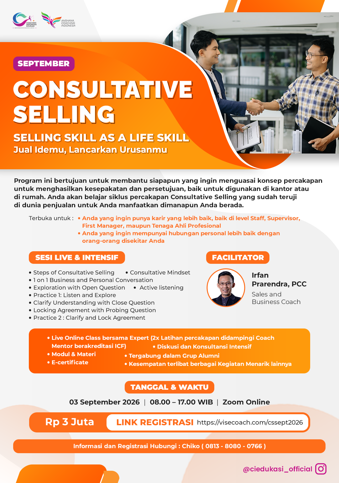 dan didukung oleh tim Sales Coach berpengalaman dari Coaching Indonesia yang akan mendampingi peserta sebagai Coach Mentor.