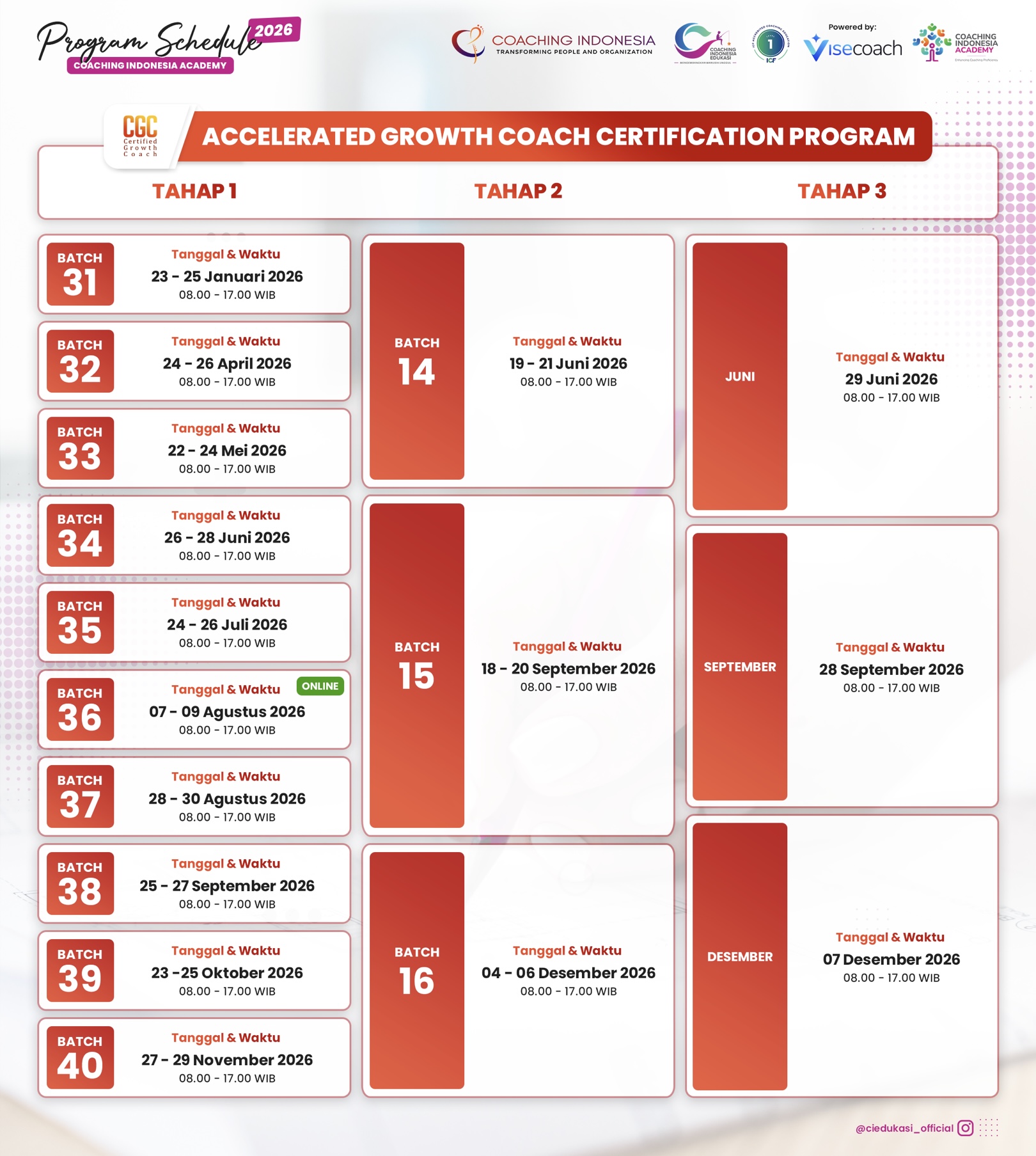 Program Accelerated Growth Coach Certification ini sangat bermanfaat untuk diterapkan baik di area kehidupan personal maupun profesional.