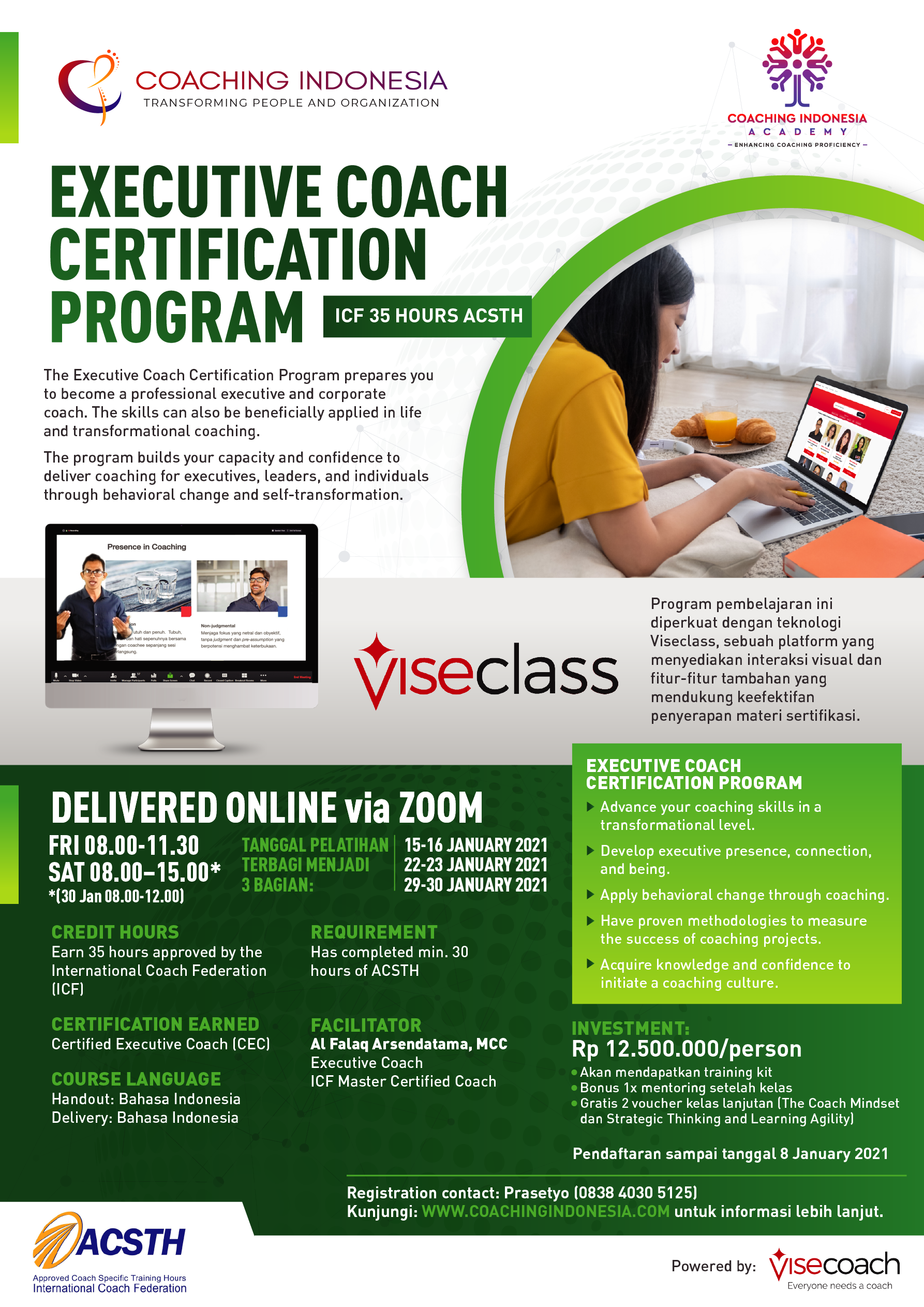 Total 35 jam ACSTH (Approved Coach Specific Training Hours) dari ICF, yang terdiri dari: