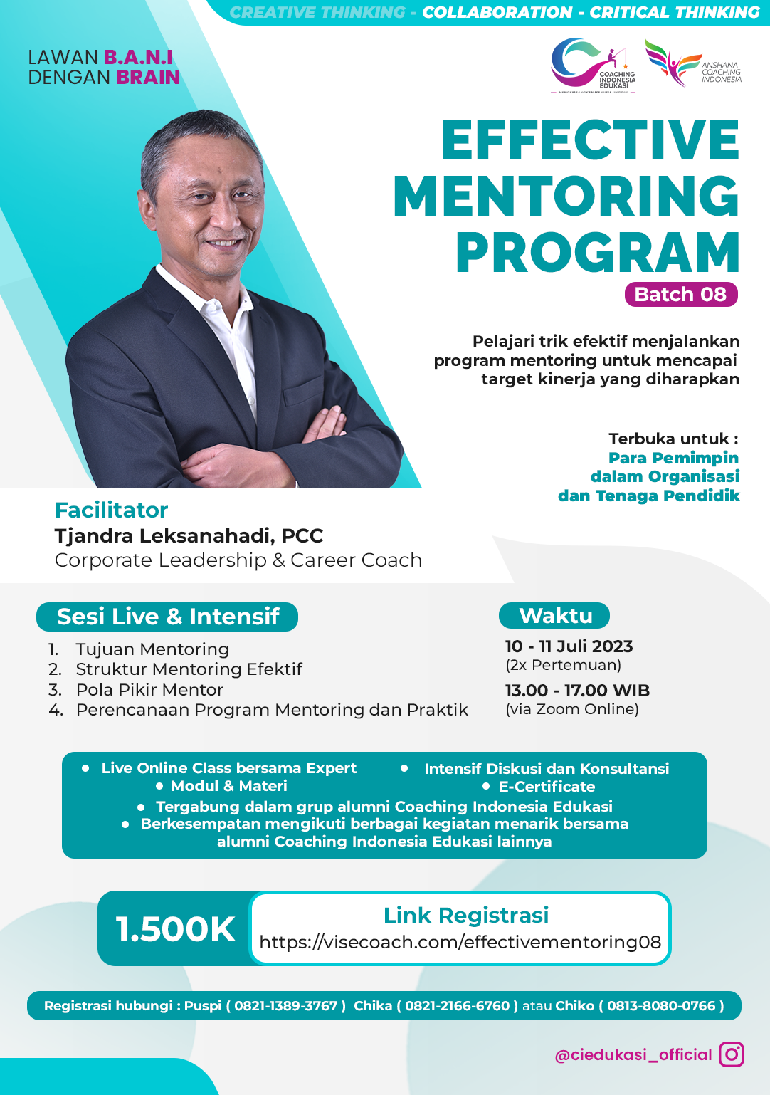 Anda akan mempelajari trik baru yang efektif untuk menjalankan program mentoring guna memastikan peserta didik memiliki keterampilan sehingga dapat mencapai target kinerja yang diharapkan.